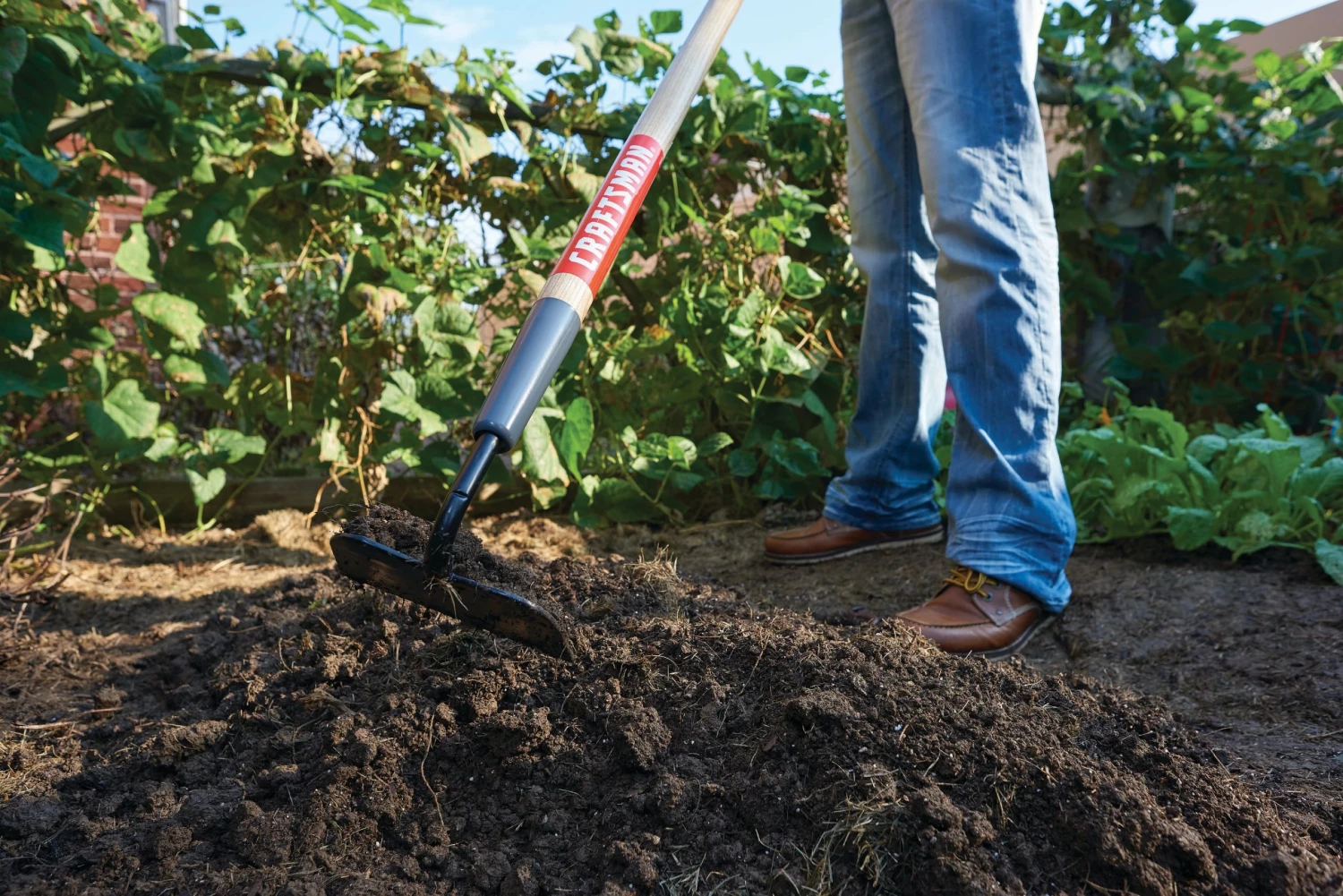 - Forged garden hoe with wood handle is ideal for chopping, weeding and clearing garden growth