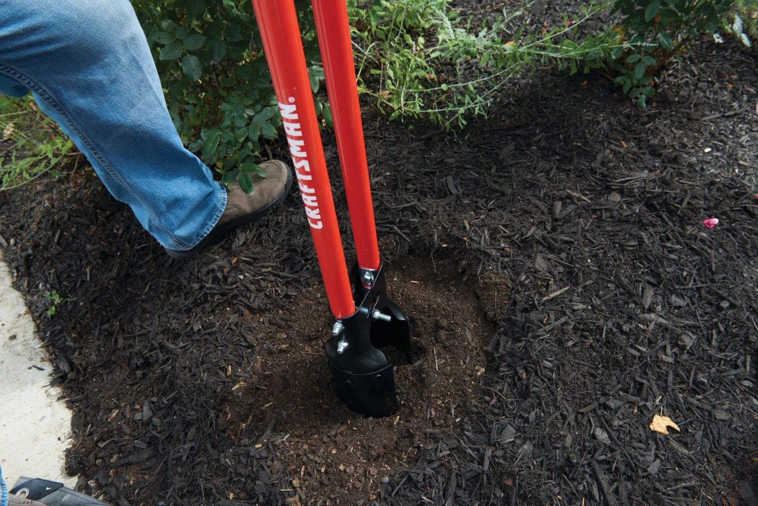 - Works by holding handles upright and setting the blades on the ground, forcing them downward into the soil