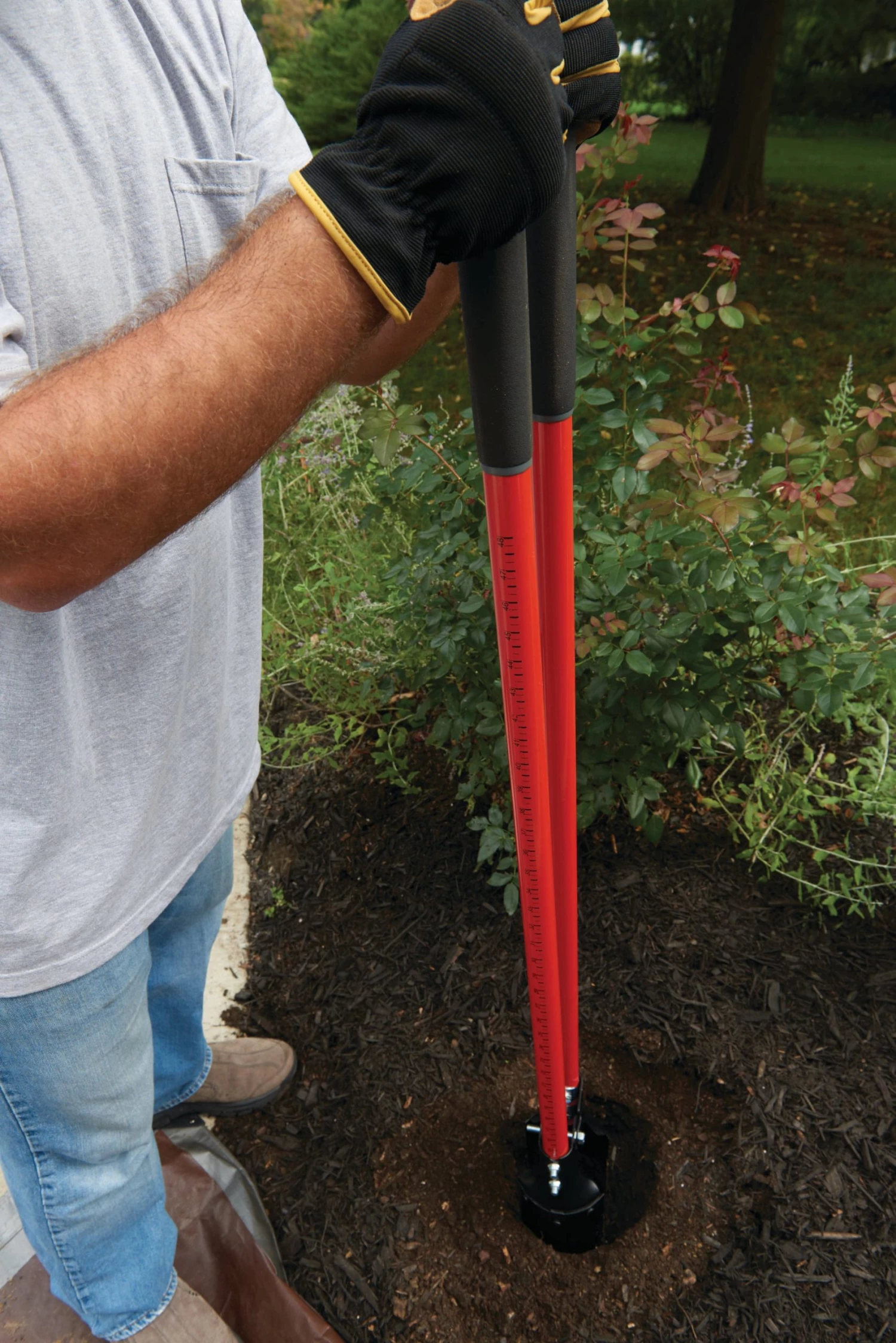 - Measurement depth marked fiberglass handle allows for precise digging