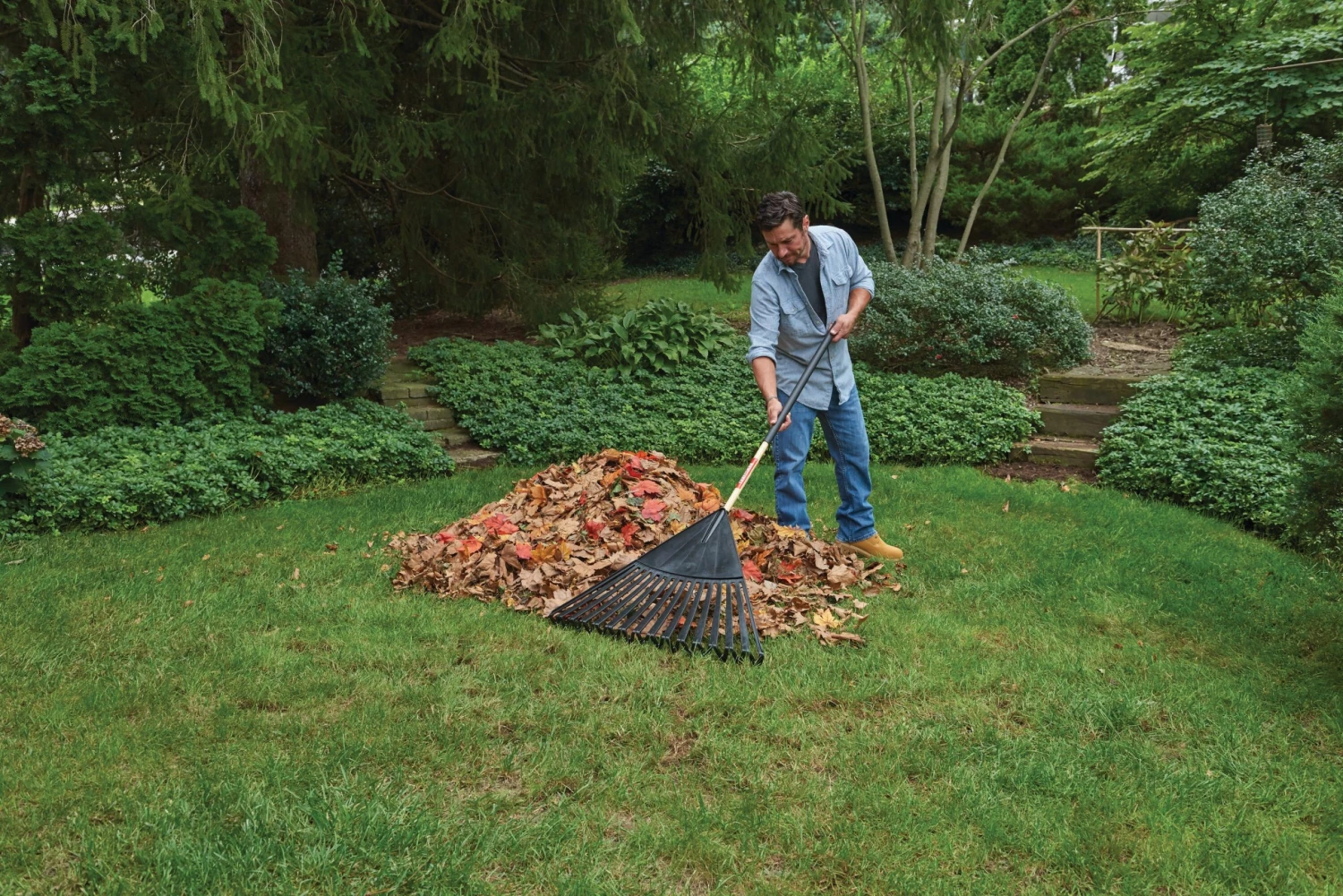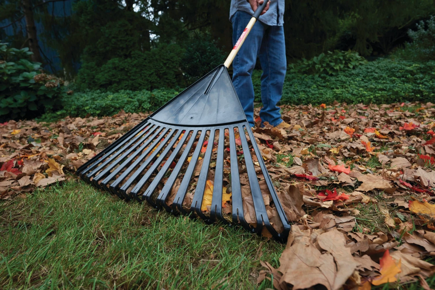 - Wood handle 30-In leaf rake ideal for large leaf raking capacity and general yard clean-up