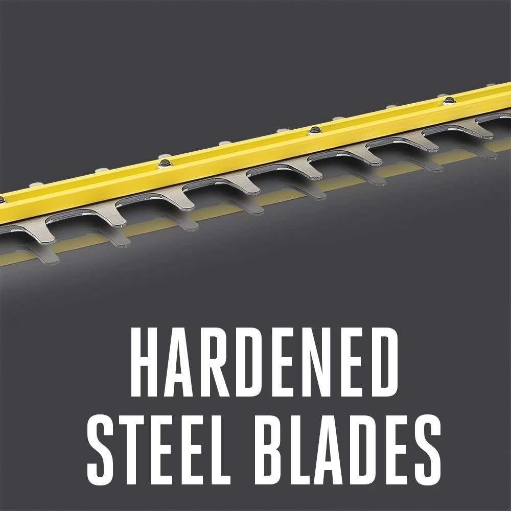 The world’s first cordless hedge trimmer with a 1 In. cut capacity! The POWER+ Hedge Trimmer has a high-efficiency brushless motor which allows for longer run times and lighter weight. The 24 In. dual action, hardened steel blades for precise, clean cuts. The trimmer is also equipped with fully serviceable blades to make sharpening quick and easy. Delivering 3,000 strokes per minute to get the tough jobs done faster. Compatible with all POWER+ ARC Lithium™ batteries to deliver Power Beyond Belief™.