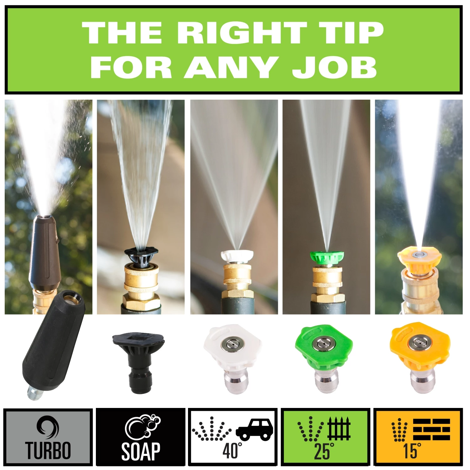 - 15°, 25° And 40° tips, plus soap and turbo nozzles included