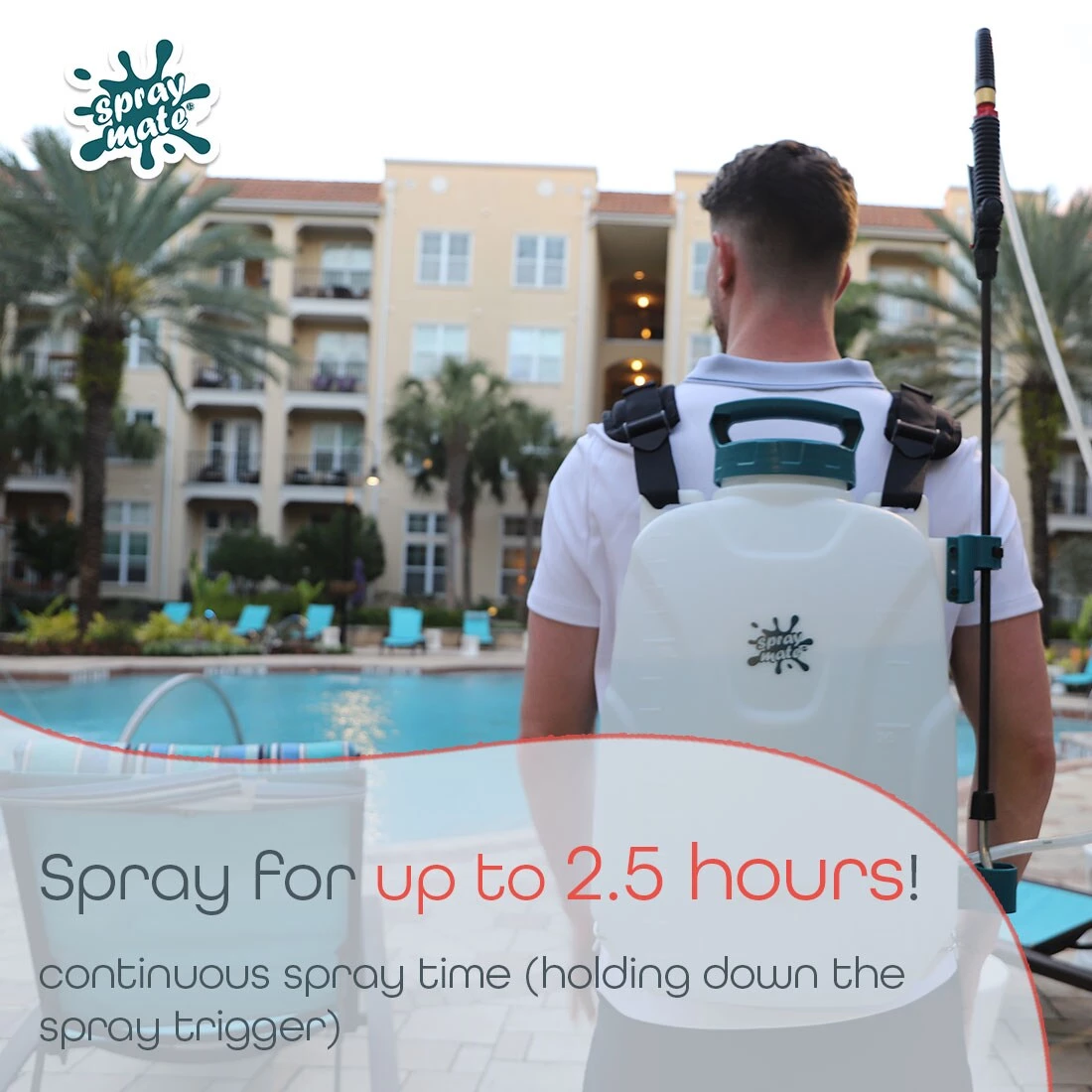- 18-Volt rechargeable battery – spray continuously for up to 2.5-hours on a single charge of the 18-Volt lithium-ion battery (charges in 2 hours)