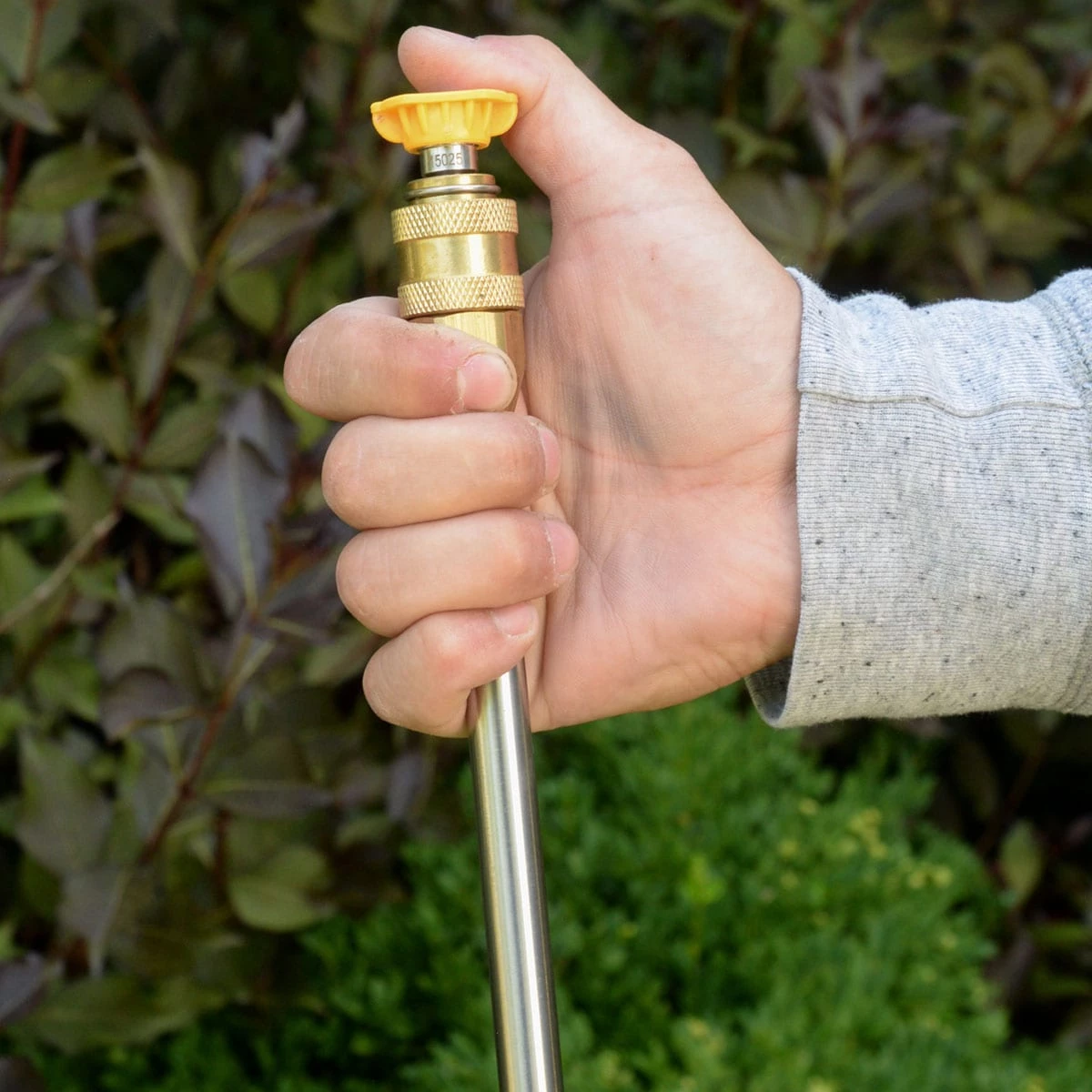 - One-touch quick-connect adapter for easy one-handed attachment of spray tips and nozzles