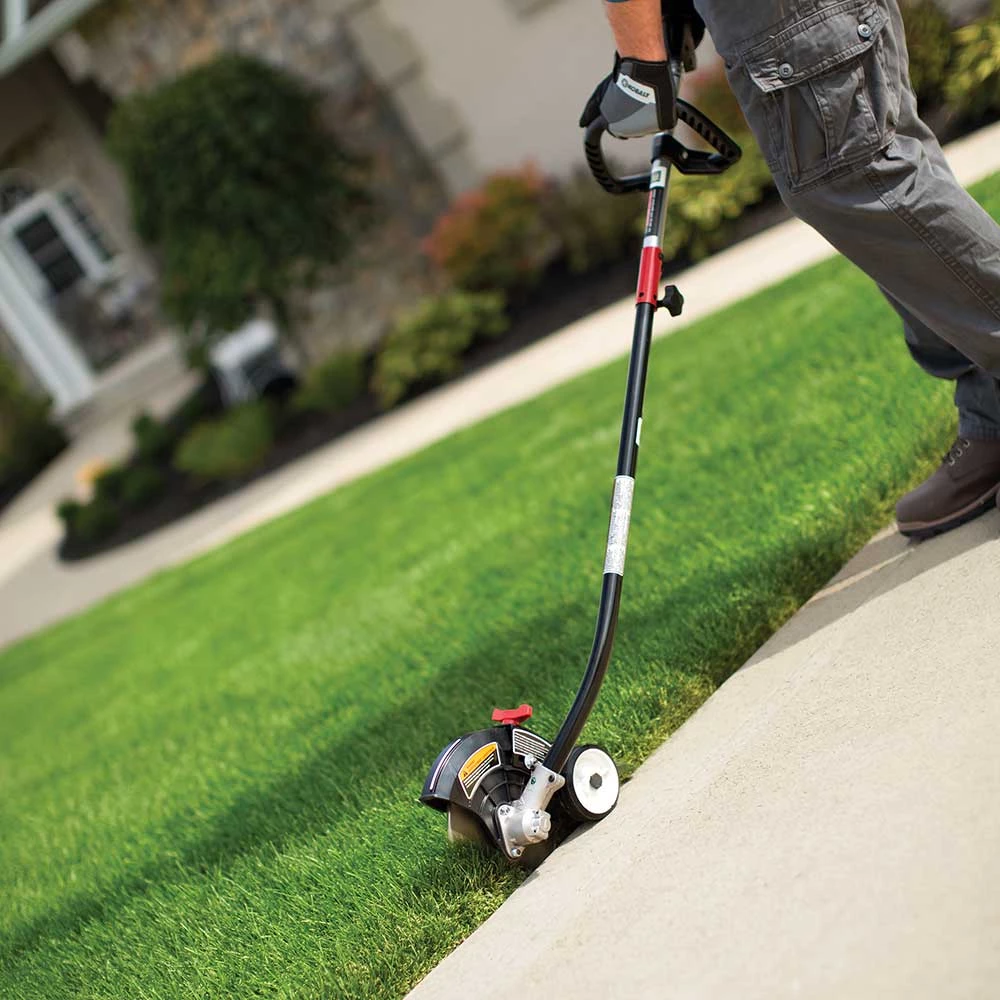 - This attachment is equipped with an easily maneuverable wheel and long blade for easy edging